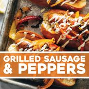 Keywords: grilled sausages and peppers, garlic aioli, grilled sausages